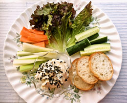 (3)を器に盛り、ふりふり塩こんぶを振る。フランスパン、好みの野菜、クラッカーなどを添える。